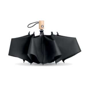 • Zaščitite se pred dežjem s tem elegantnim dežnikom. Zaradi reber iz steklenih vlaken je ta dežnik močan, a lahek. Ročaj iz bambusa daje naraven videz, bombažni zapestni trak pa ga bo obesil na zapestje.