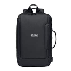 • Računalniški nahrbtnik iz poliestra z oblazinjenim ramenskim trakom, ki vključuje en glavni notranji predel za 16 -palčni prenosni računalnik in polnilni kabel USB.